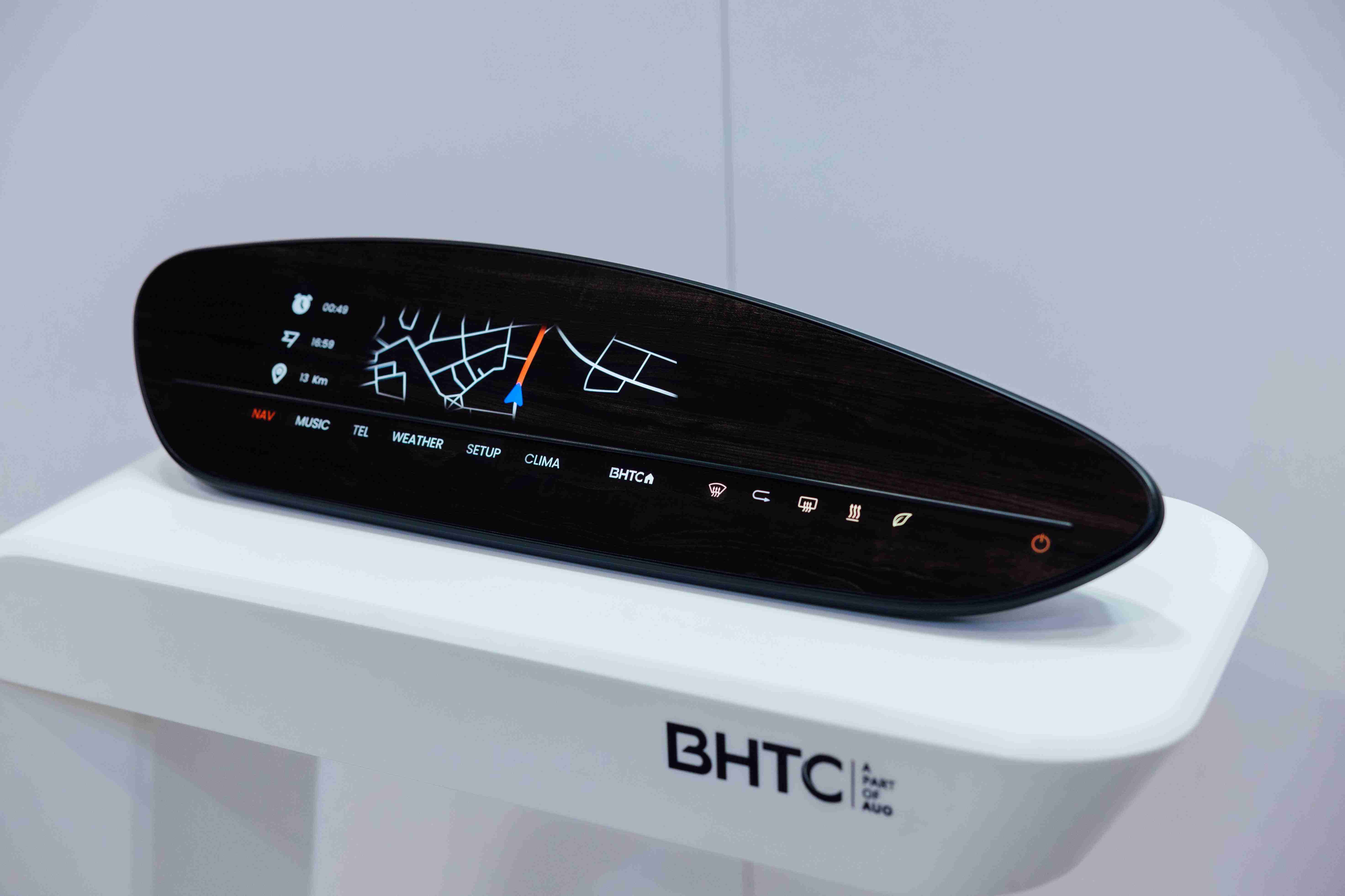 BHTC的木纹车用显示器(Display Behind Wood)将无缝木质表面与显示器结合后,,可以融入车内设计中,,提供驾驶优质的视觉效果,,,,加上其无边框的设计和亮度调控,,,创造更优质的车内体验。。。