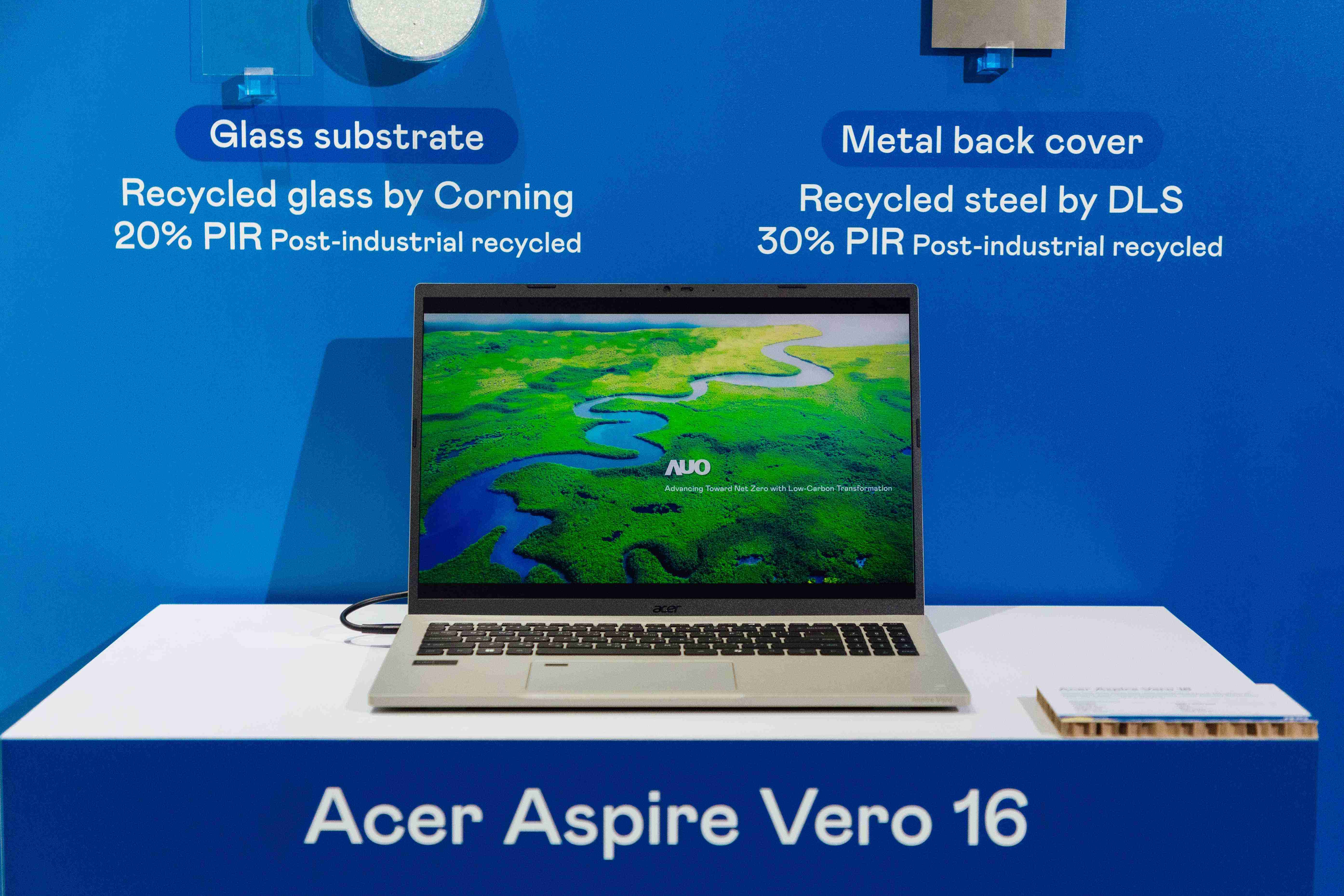 全球首款笔记型电脑采用EBpay100%绿电制造的面板,,,,结合PCR外亦使用工业后回收材料(PIR),,,,例如回收玻璃和金属,,,,减少对环境的影响。。