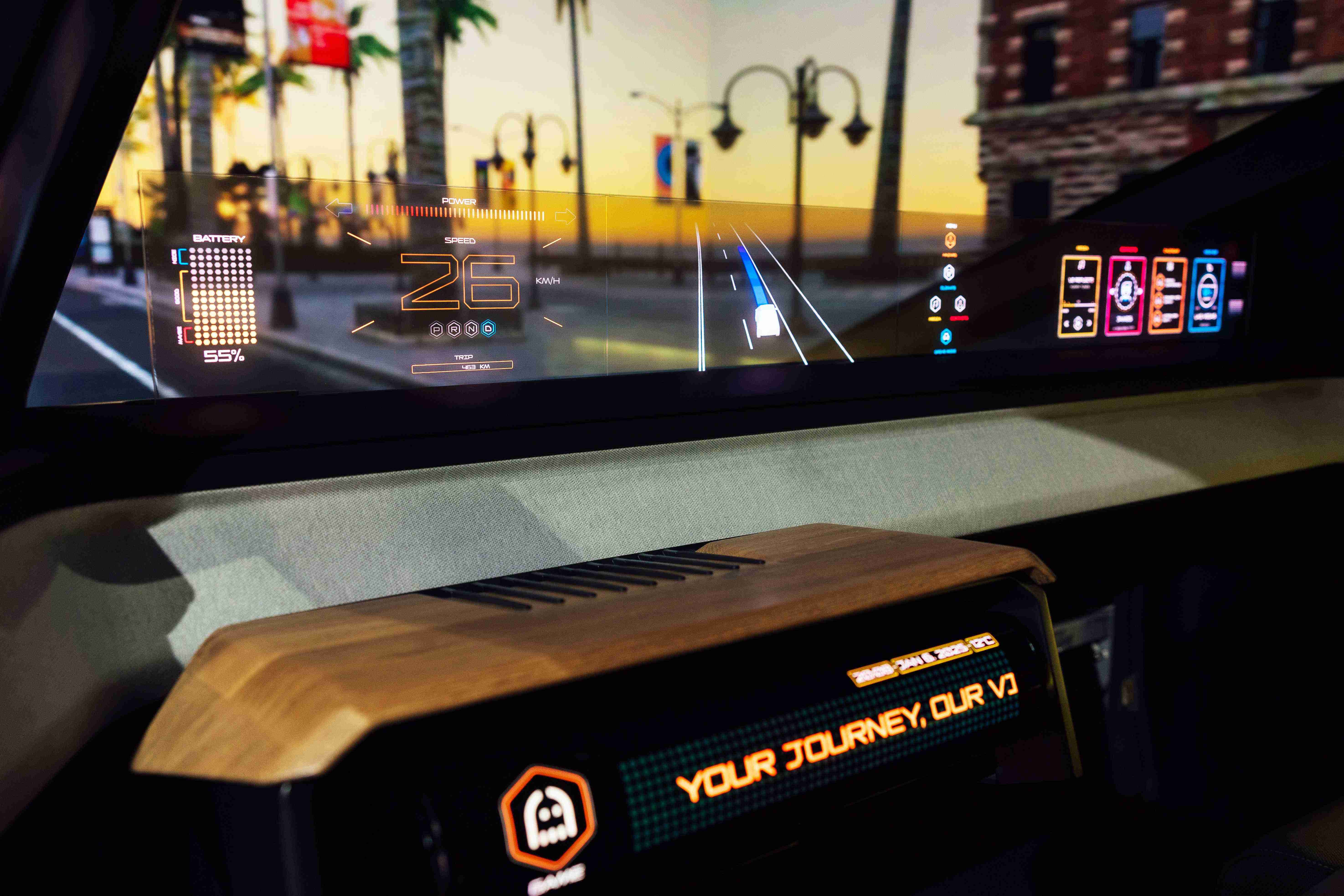 EBpaySmart Cockpit 2025 在车头及车尾搭载合作伙伴Ennostar开发的互动式矩阵显示器(Interactive Matrix Display),,其突破传设计框架,,利用优化的光源整合技术,,,提供更高亮度与对比度的显示效果,,,,营造驾车者个性化风格并传递讯息。。