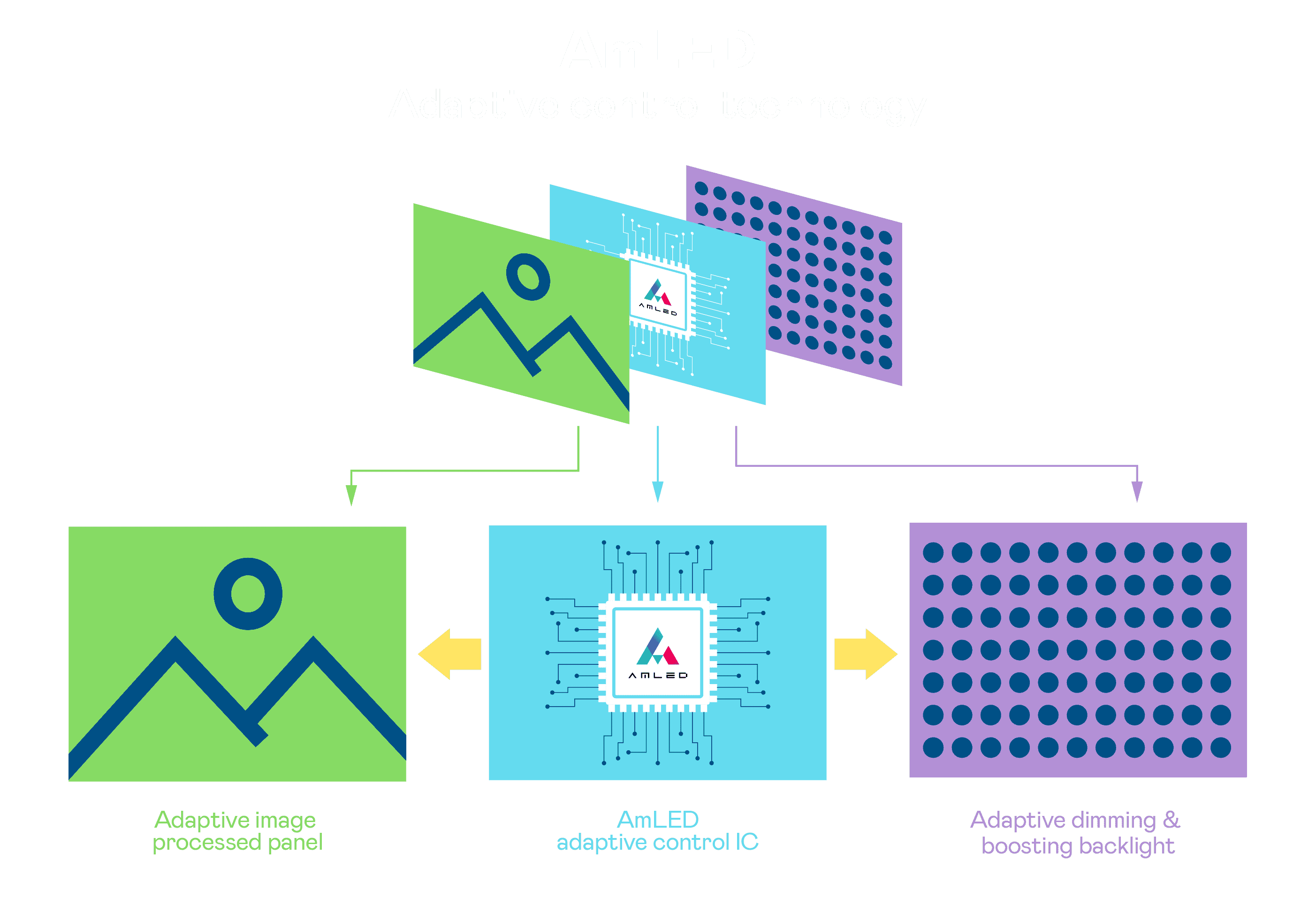 AmLED 具备更省电与低蓝光特性。。与一般的 LED 背光显示技术相比,,,,由于 AmLED 常时处于局部调光状态,,,其功耗仅有前者的 50% 左右,,,同时 AmLED 还具备低蓝光特性,,,,满足长时间使用的护眼需求。。