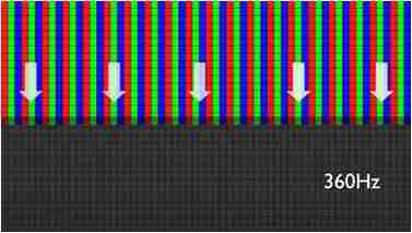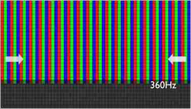 传统液晶驱动是从左到右单向进行,,,在画面更新速度愈来越愈快的情况下,,,位于驱动线路末端的右下角区域,,,画素的闸极来不及在短时间内获得足够电压,,,,无法显示出正确的颜色资讯。。。。